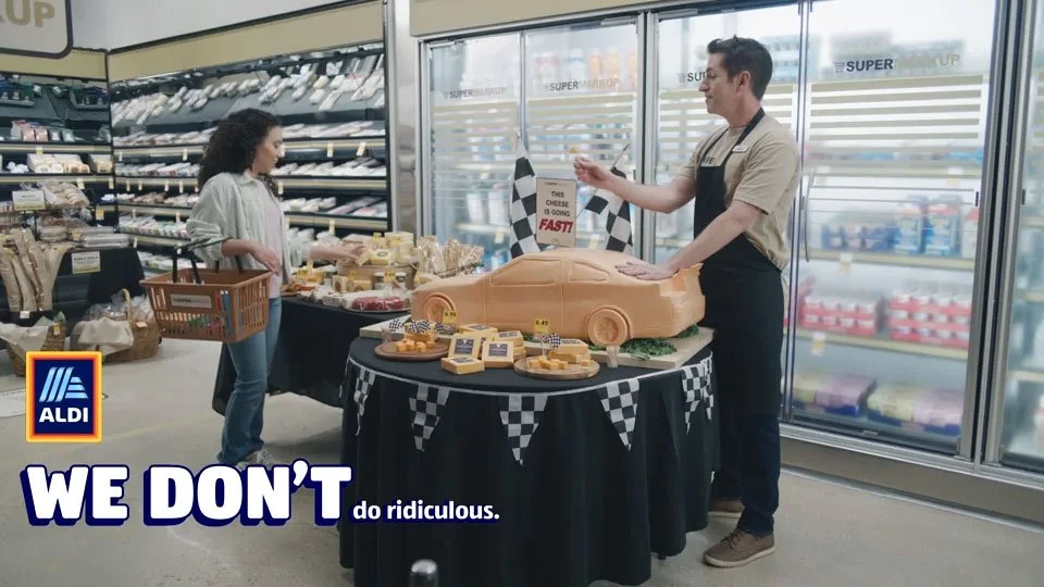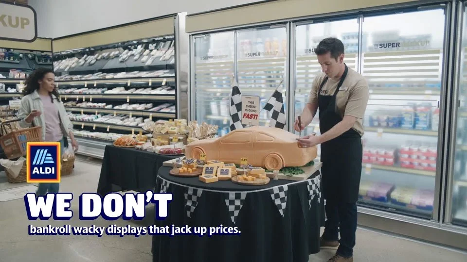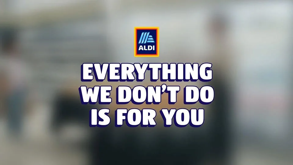 ALDI’s Everything We Don’t Do Is For You campaign shows shoppers how they’re different than big box stores: No big flashy displays, no ridiculous in-store personalities, just delicious, quality groceries at super low prices.
